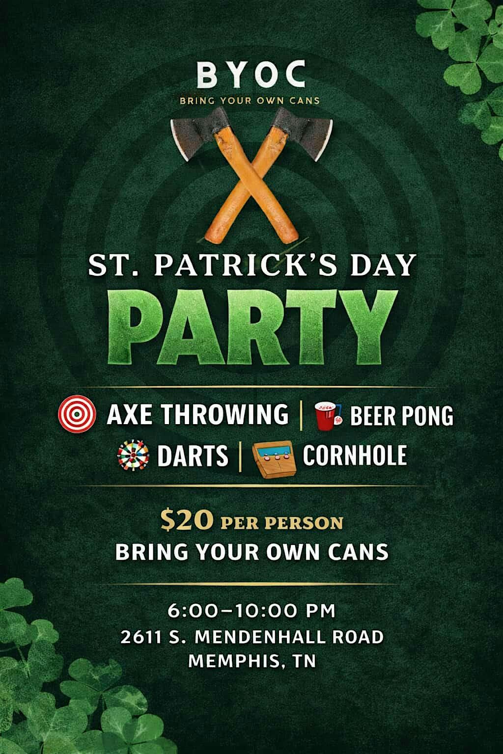 Wear your Favorite Green! Come party with us at a gun range (no weapons of course). Wing, cornhole, darts, and beer pong available. BYOC!