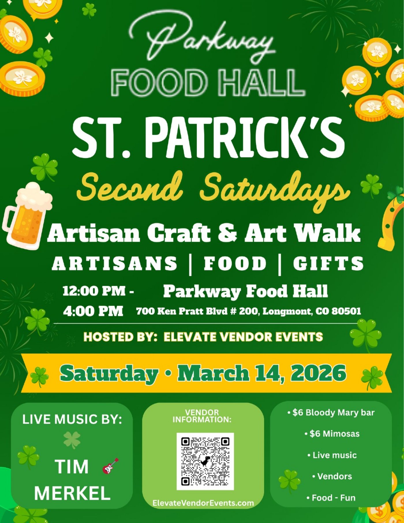 Celebrate St. Patrick’s Day at Parkway Food Hall with our Second Saturdays Artisan Craft & Art Walk!