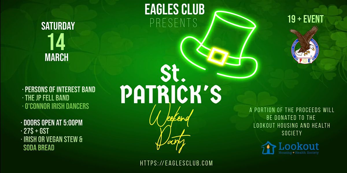 St. Patrick’s Weekend Party with live music, Irish dancers, pipe band, and stew - a night supporting the Lookout Housing and Health Society.