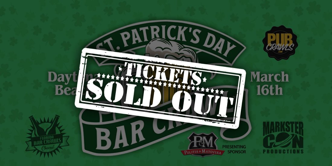 Get ready for the ultimate St. Patrick's Day celebration in Daytona Beach - presented by Politis & Matovina, P.A.! Join us on March 16, 2024 (4pm to 10pm) for an unforgettable St. Paddy's Day Bar Crawl along Main Street!