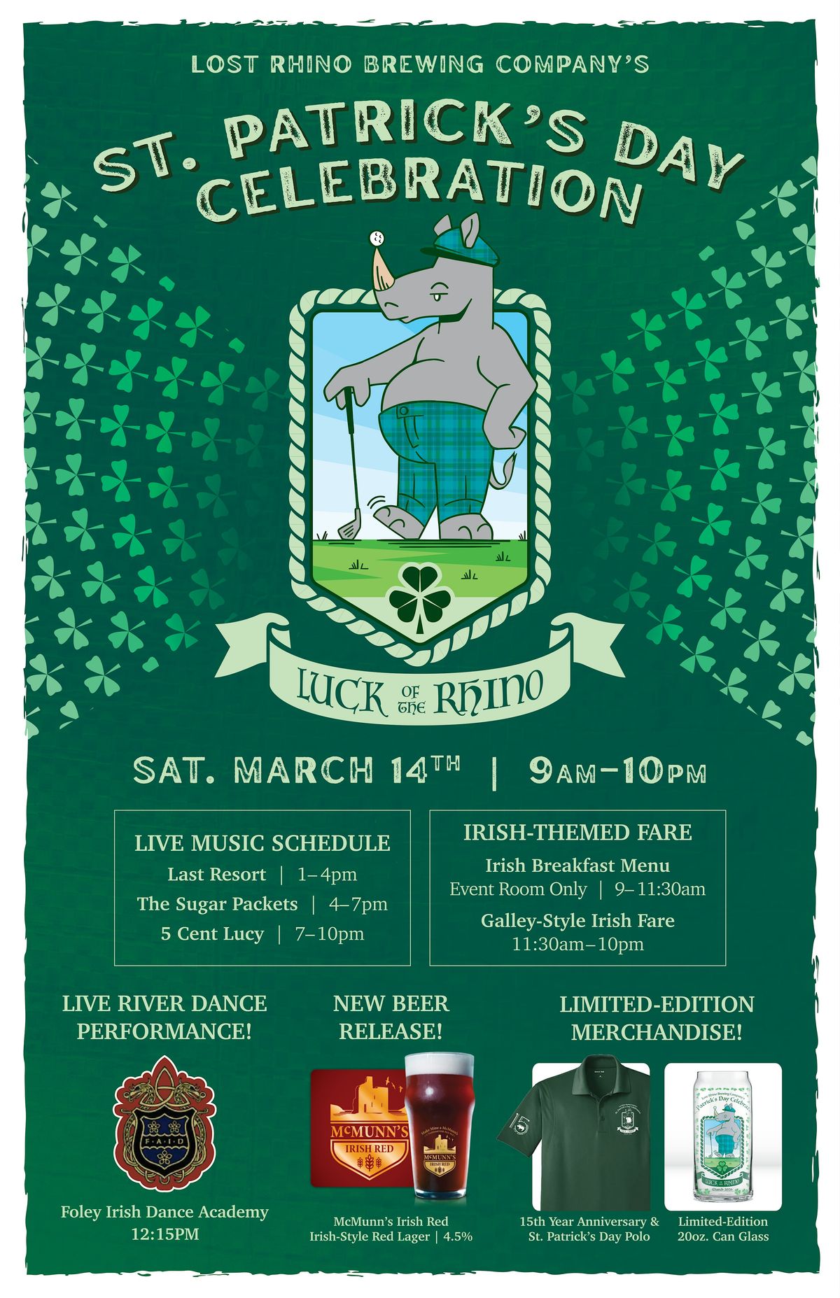 Join us for Lost Rhino's annual St. Patrick's Celebration on Saturday, March 14th! ๐