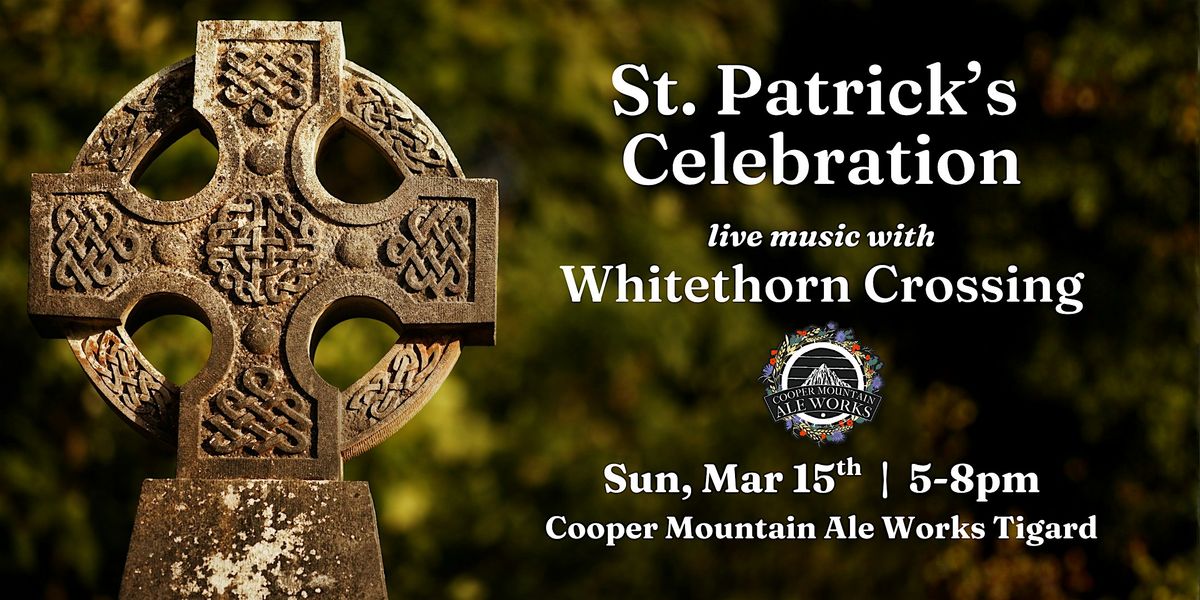 Enjoy St Patrick's Day with Traditional Irish music by Whitethorn Crossing! Join us at Cooper Mountain Ale Works on March 15, 2026 at 5:00 PM for a lively evening of music, Irish dinner specials, and Irish-inspired ales. Kids are welcome and free with a tickted adult.