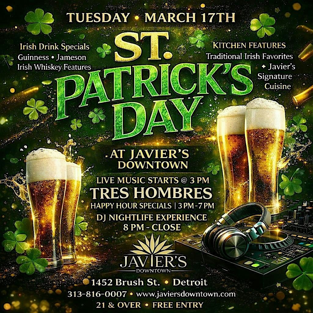 Welcome to St Patricks Day At Javier's Downtown! Join us on March 17, 2026 at 3:00 PM for a festive celebration at Javier's Downtown. Get ready for a day filled with fun, music, and of course, plenty of green! Don't forget to wear your best St. Patrick's Day outfit and get ready to dance the night away. See you there!