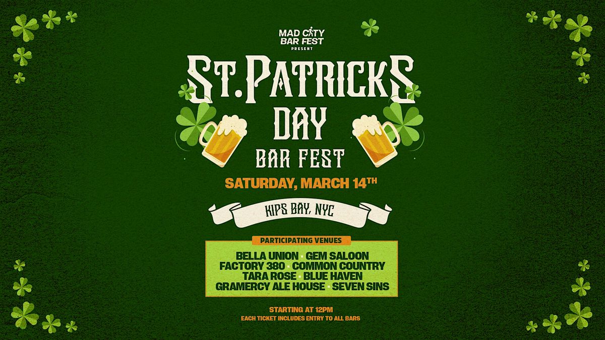 Mad City Bar Fest Presents: St. Patrick's Day Bar Fest in Manhattan's Kip's Bay. Join us at the most popular bars & clubs in Kips Bay!
