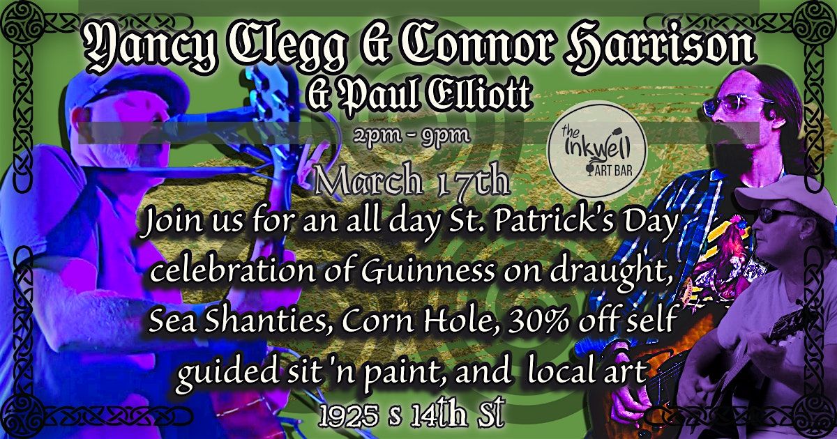 Join us for a laid-back St. Patrick’s Day celebration at The Inkwell with live music from Paul Elliott, Yancy Clegg, and Connor Harrison.