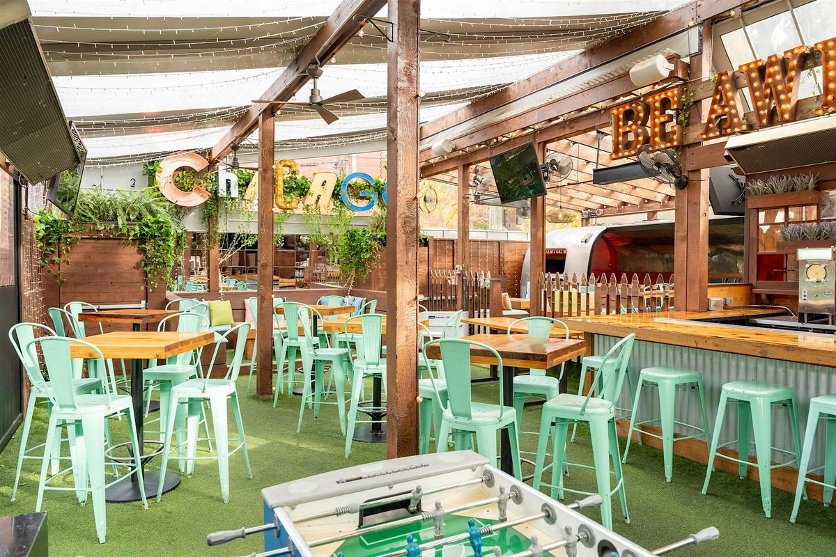 Package Includes (1) welcome shot tray and (2) select combo buckets of beer and hard seltzer. This in addition to a dedicated server, and picnic-style seating. Space can accommodate up to 8 guests looking for the perfect party home base. General Admission for all guests must be purchased separately.