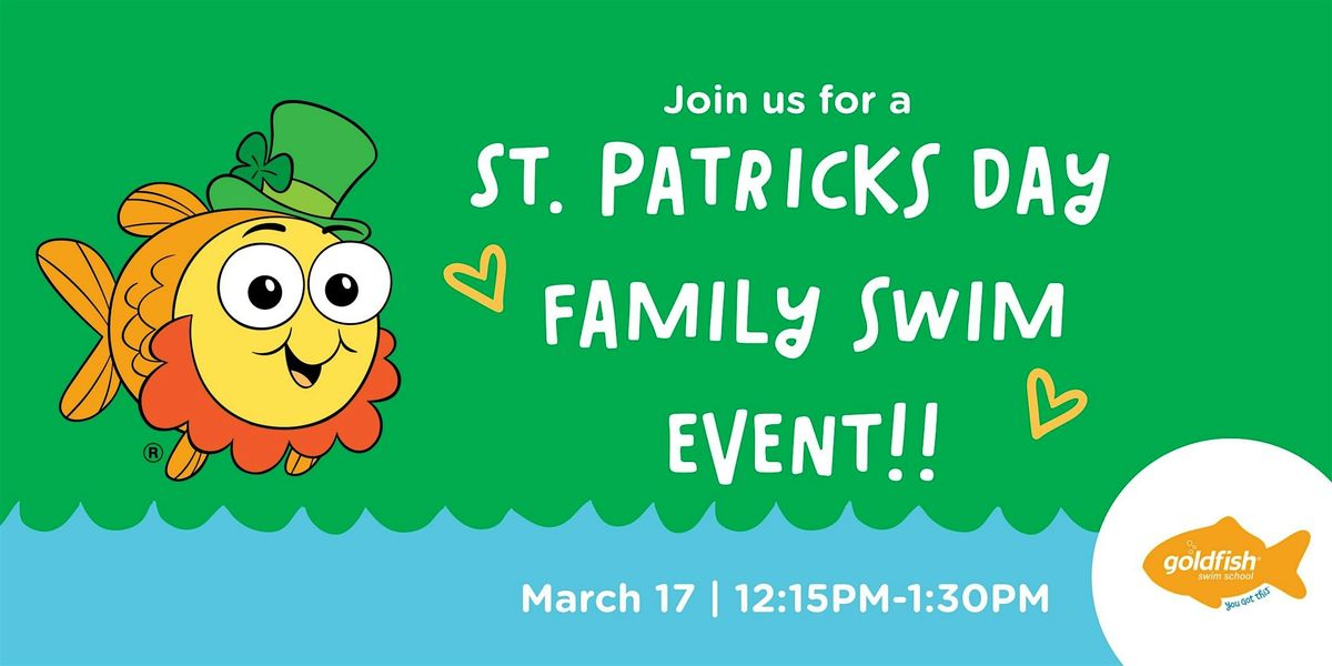 Join us on March 17th from 12:15-1:30 p.m. for a St. Patrick's Day Family Swim Event!