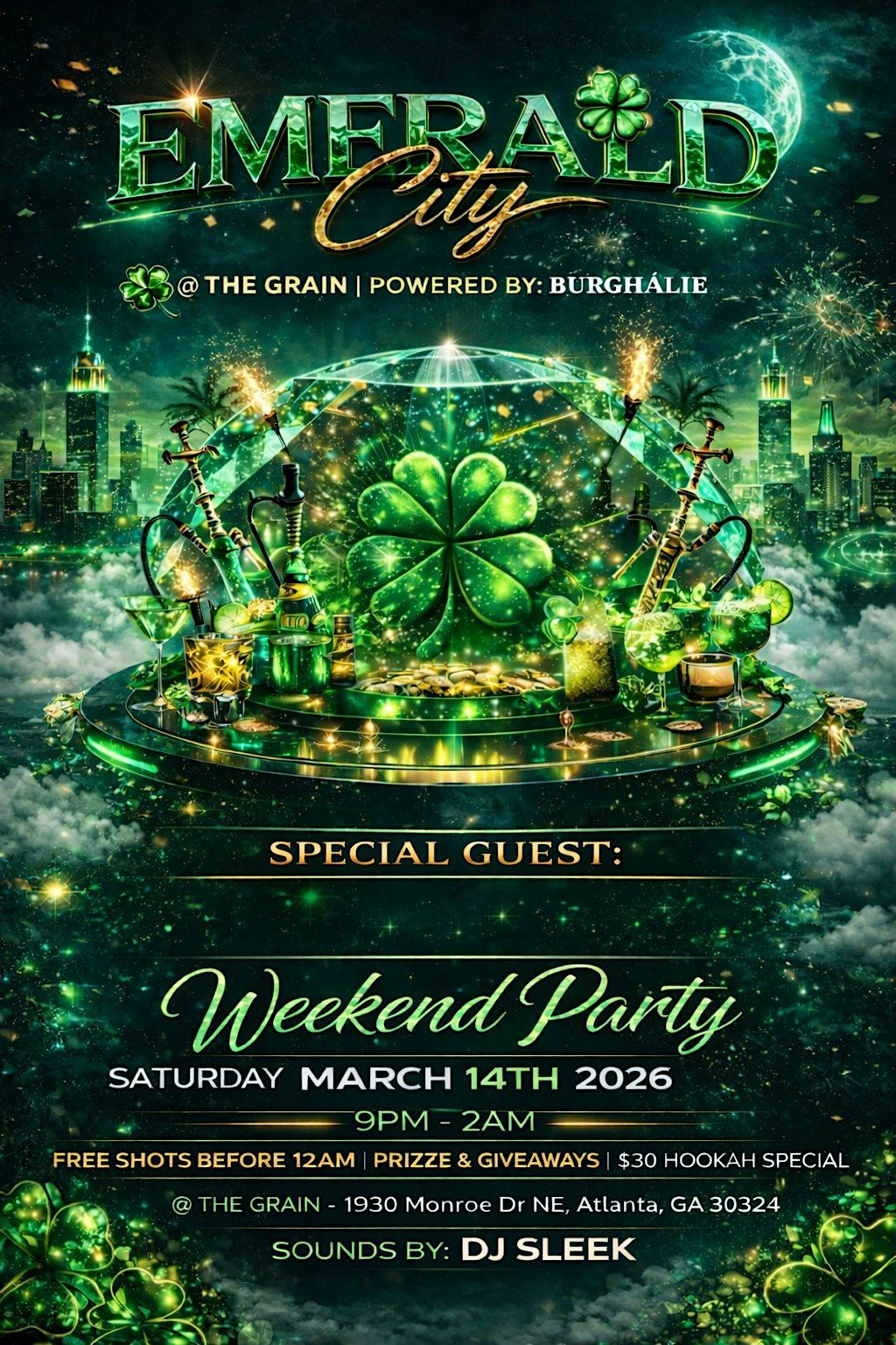 • Atlanta, get ready for a St. Patrick’s Day weekend experience like no other! On Saturday, March 14th, 2026, Burghàlie transforms The Grain into Emerald City — a high-energy, fully immersive party experience blending elevated nightlife, interactive moments, and unforgettable vibes.