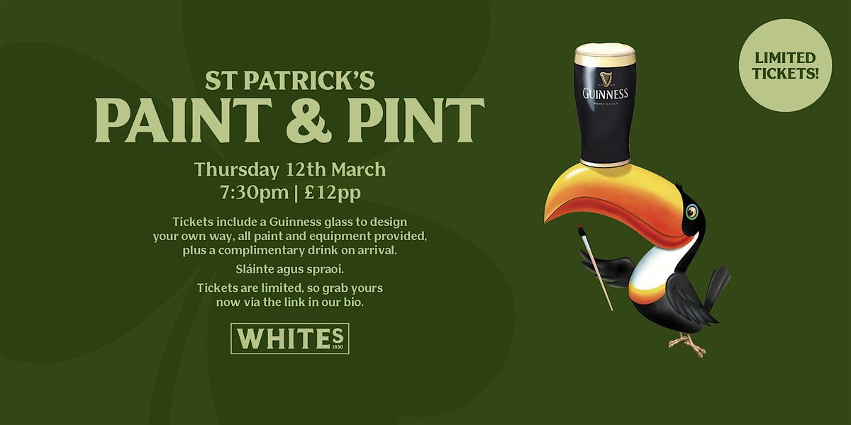 Tickets: £12 & Guinness pint glass, all painting equipment & a complimentary pint on arrival!☘️