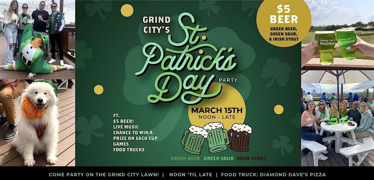 St. Patrick's Day is back at Grind City for year 4! Come after the parade or come straight here for $5 beer, the pizza food truck, & more!About this Event