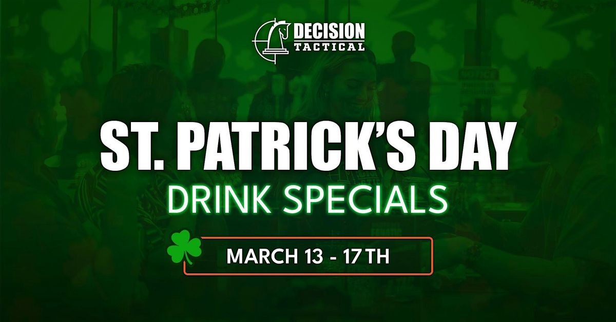 While our St. Patrick’s Day drink specials run March 13–17, the full Decision Tactical experience goes far beyond the bar.