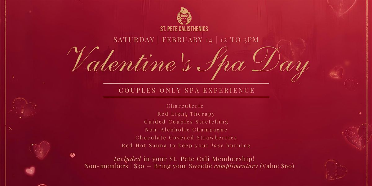 Join the St. Pete Cali Family this Valentines Day afternoon from Noon to 3pm for this exclusive Couples Spa Day Experience!