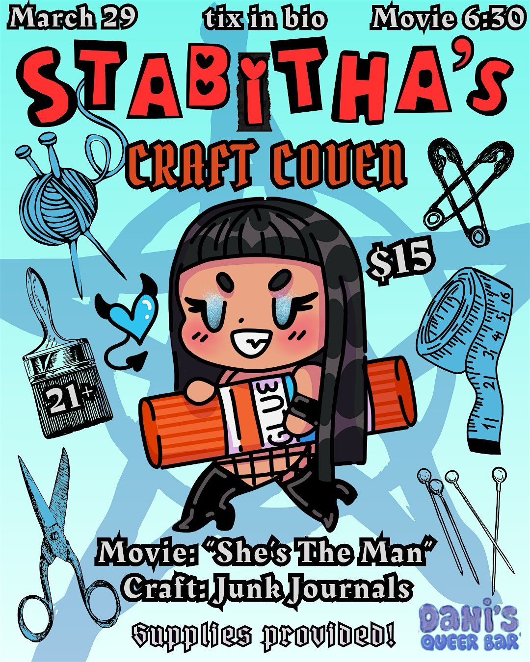 A monthly movie & crafting night hosted by local drag queen Stabitha Christie!