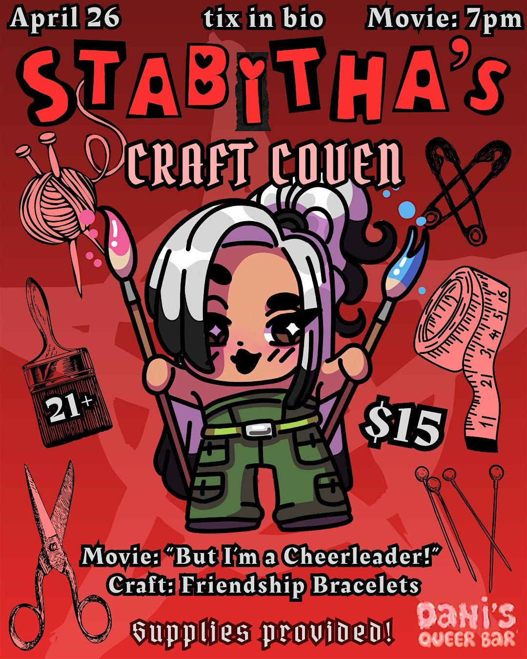 A monthly movie & crafting night hosted by local drag queen Stabitha Christie!About this Event