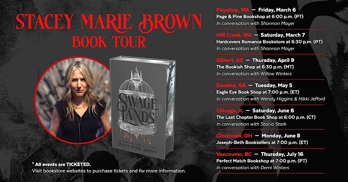 page & pine is excited to host a celebratory evening honoring the traditionally published re-release of Wild Lands (Savage Lands #2) with bestselling author Stacey Marie Brown, joined by acclaimed fantasy author Shannon Mayer. This event will mark the very first stop on Stacey’s tour celebrating the re-releases, making it an especially exciting evening!