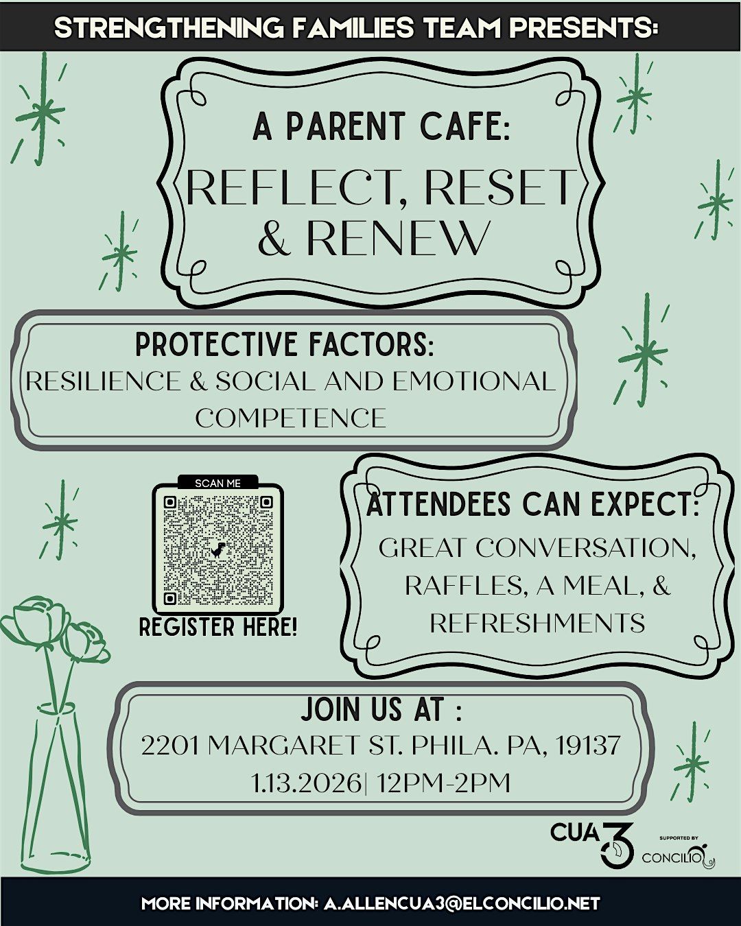 Join us for our staff parent cafe! attendees can expect great conversation, raffles, a meal, & refreshments.