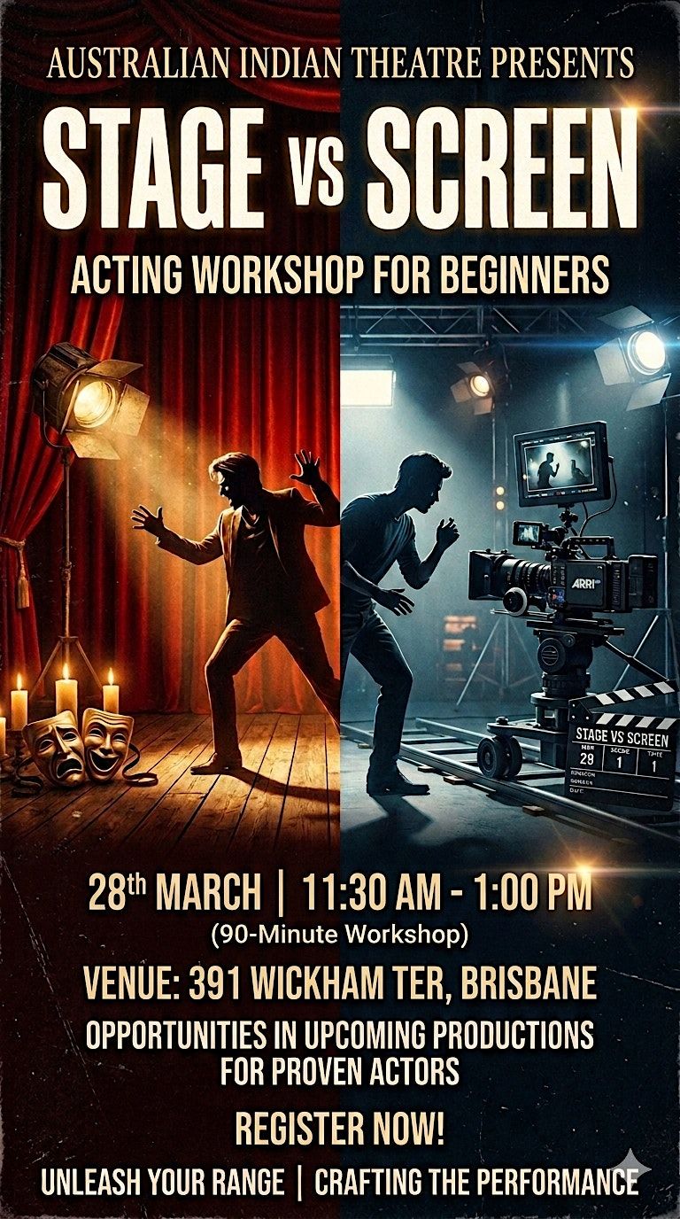 Ready to dive into the world of acting? Join our fun and interactive workshop designed just for beginners! You'll get hands-on experience exploring the key differences between stage and screen acting. Whether you dream of the theater spotlight or the camera's glare, this in-person session will help you discover your style and boost your confidence. Come meet fellow newbies and have a blast learning the ropes!