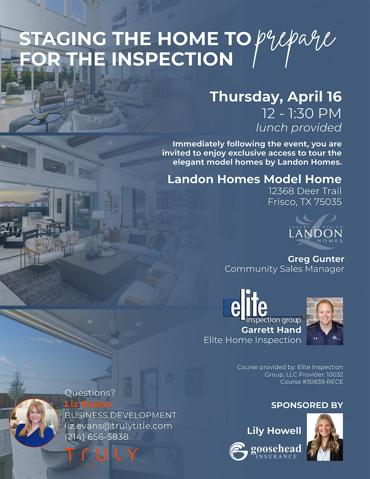Immediately following the event, you are invited to enjoy exclusive access to tour the elegant model homes by Landon Homes.