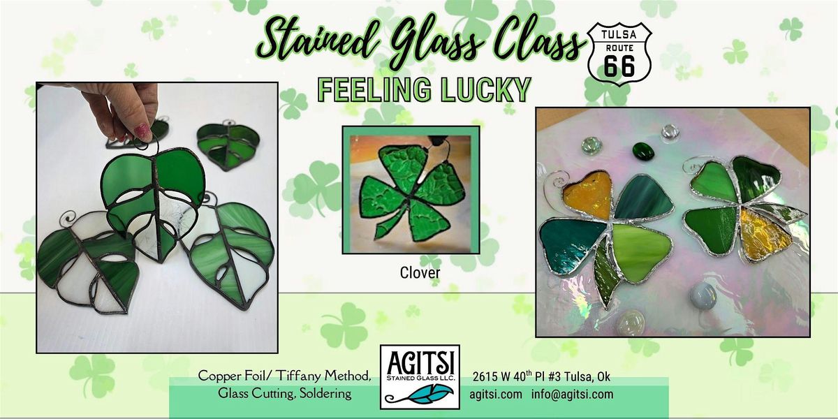 The $45 Clover will teach you to cut your glass, apply copper foil ( Tiffany Method) and solder. You will take your piece home with you. Photos above was made in class.