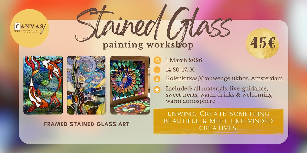 Looking for a cozy, creative Sunday activity in Amsterdam? Come join our Stained Glass Painting Workshop and make a vibrant, light-catching artwork that looks like stained glass even if you’ve never painted before.