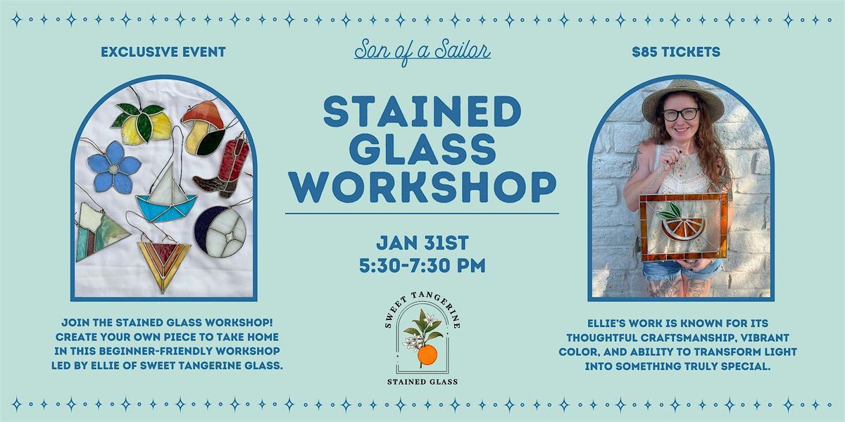 Get creative and dive into a fun, hands-on stained glass experience at Son of a Sailor. This 2 hour class is perfect for anyone wanting to get a feel for how stained glass art is made. You will start by choosing between eight different designs, then you will pick your own pre-cut and ground glass pieces, wrap them in copper foil, solder them together, and take it home with you! Bring your friends or come solo. Either way, you're in for a great time!