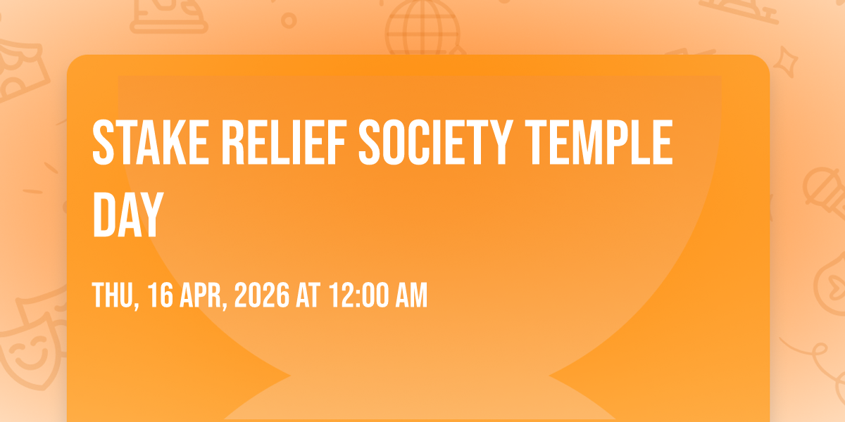In conjuction with our Relief Society dinner on April 18th we would like to invite you all to attend the temple on April 16th to participate in any ordinance that day. We will be attending the 10 a.m. and 7 p.m. sessions for those who would like to join us.