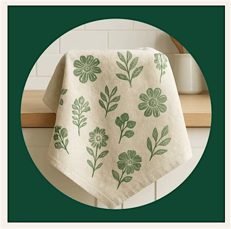 In this hands-on workshop, you’ll design and carve your own rubber stamp, then use fabric inks to print a one-of-a-kind tea towel. This cozy, creative session is perfect for beginners and experienced makers alike. Come slow down, explore texture and pattern, and leave with a functional piece of art made by you. You'll be able to use your stamps to make more personalized tea towels for yourself or as gifts.