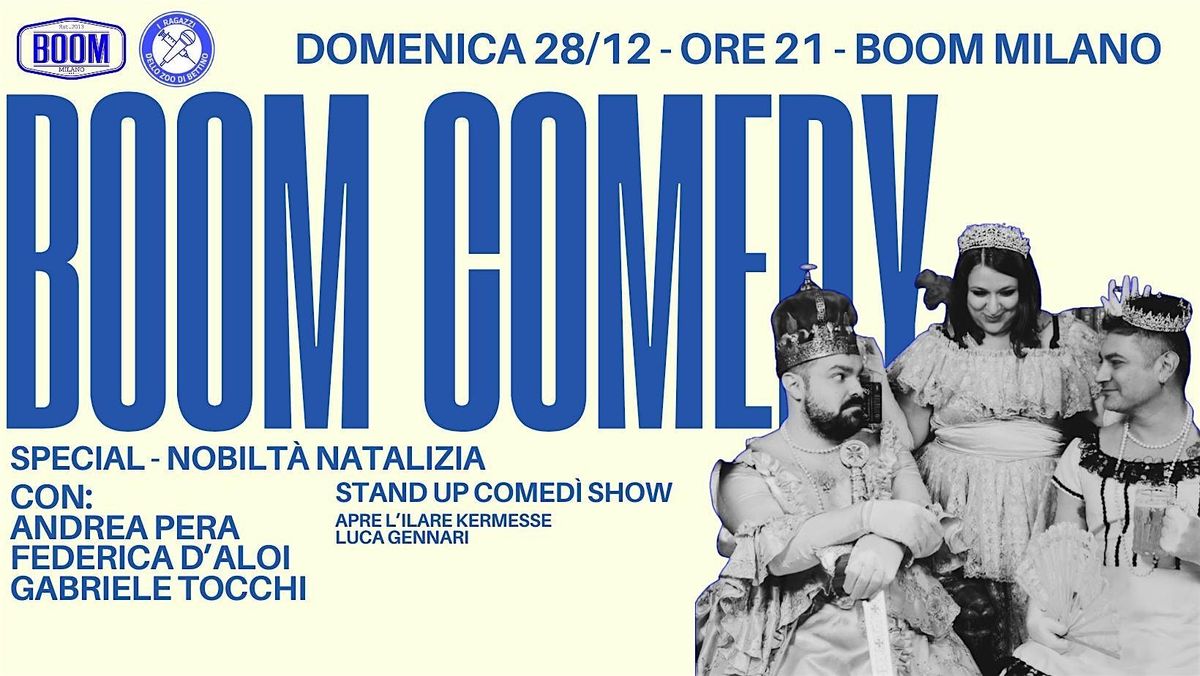 nobiltà e risate Domenica 28 al Boom. vi stiamo apparecchiando una serata totalmente matta, non perdetevela. 3 comici 1 apertura