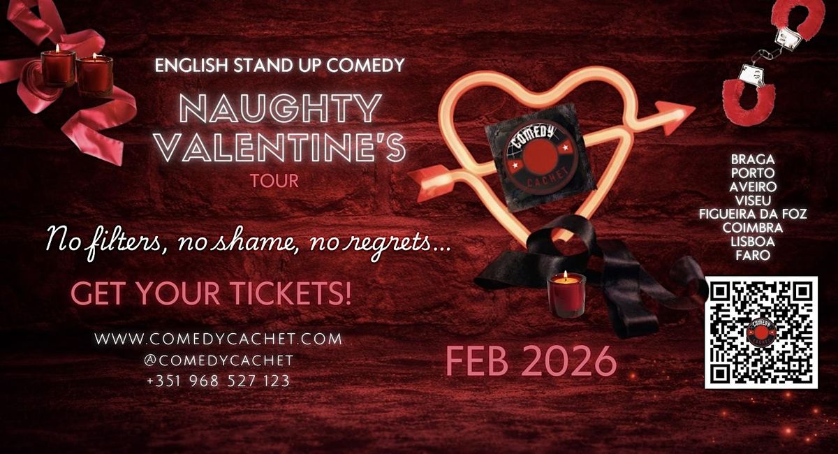 Naughty Valentine’s, presented by Comedy Cachet, is invading Portugal this February — from Braga to Faro, Porto to Lisbon — with 5 US stand-up comedians who clearly woke up and chose violence. Verbally.