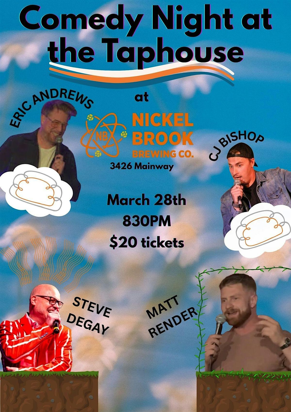 Get ready to laugh til it hurts at our Stand Up Comedy Night happening live at the Burlington's favourite taphouse - Nickelbrook Brewery! Join us in person for an evening filled with hilarious jokes, good vibes, and tasty brews with your host CJ Bishop, and a curated selection of the best comedians around. Whether you're a comedy fanatic or just wanna chill with friends, this is the perfect night out. Grab a seat, sip on some craft beer, enjoy the full food menu and take in the nonstop laughs. Don’t miss out on the fun!