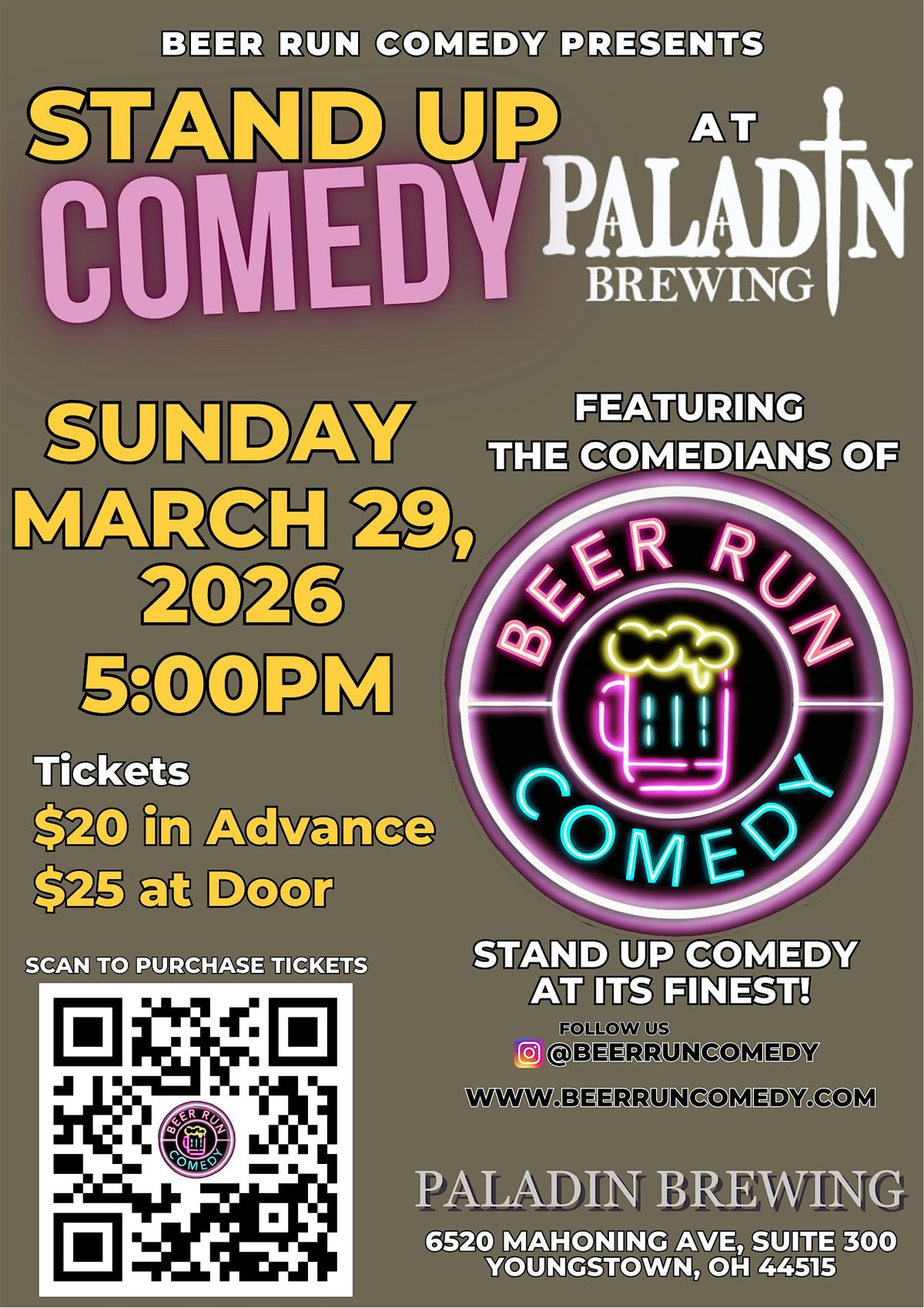 The guys will be at Paladin Brewing in Youngstown, OH on Sunday March 29, 2026 at 5:00pm!!! TIckets can be purchased online for $20.00 each, or at the door the day of the event for $25.00 each.