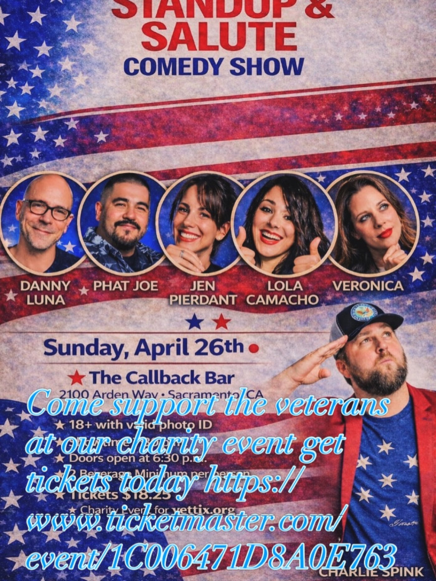 This is a charity event for vettix.org if you are former or active military, you may go on to the website and check if there are free tickets left if not, then please support the cause and purchase tickets. You may purchase tickets at our ticket window the day of the event or you may go online and purchase them on Ticketmaster. We appreciate your support. here is a link for reference. Also, you may call the Comedy club or visit with any questions.