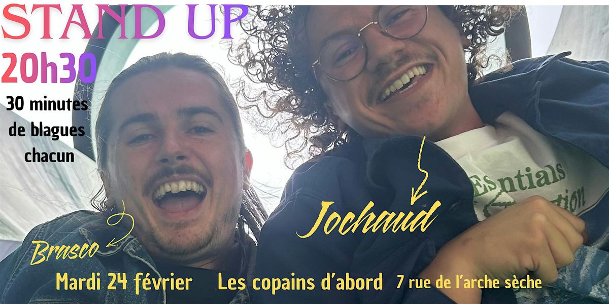 Brasco et Jochaud viennent travailler 30 minutes de blagues chacun le mardi 24 février, à 20h30 au bar "Les copains d'abord"About this Event