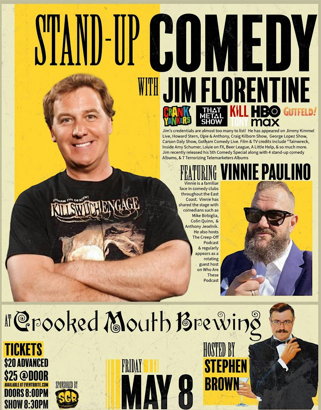 Jim Florentine is coming back to Crooked Mouth! The comedy legend had such a good time when he was here in 2025 he had to come back again! This time Vinnie Paulino will be joining him and Stephen Brown will be your host!