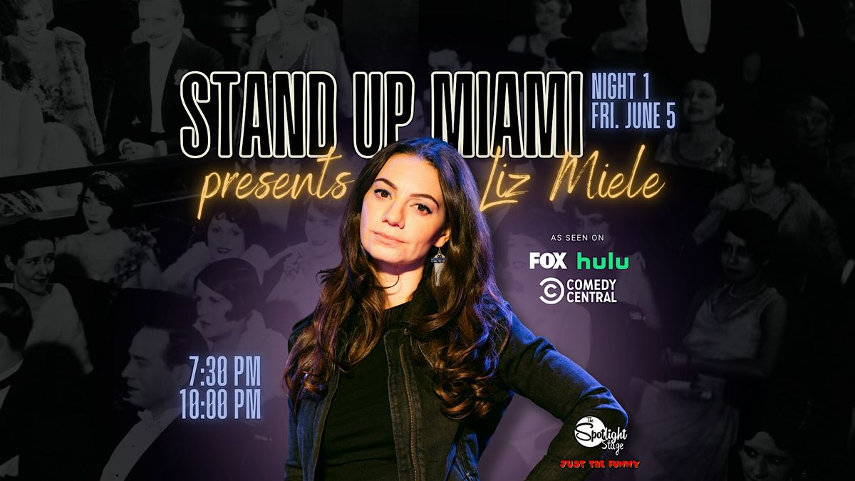 Get ready for a special night of stand-up comedy as Stand Up Miami welcomes touring headliner Liz Miele to the intimate Spotlight Stage inside Just The Funny Theater.