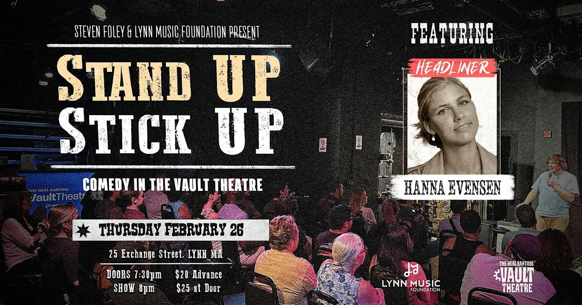 Stand Up Stick Up - Comedy @ The Vault Theatre is a monthly standup comedy show in a former historic bank, now The Neal Rantoul Vault Blackbox Theatre, inside the storied LynnArts building. Every third Thursday, we bring a lineup of New England's freshest local talent and the best national headliners to Lynn for a night of hilarious standup comedy in an intimate, unique setting. Finally, something fun to do in Lynn! Check out our website to see more upcoming shows, join our mailing list for exclusive promotions, and learn more about the show!