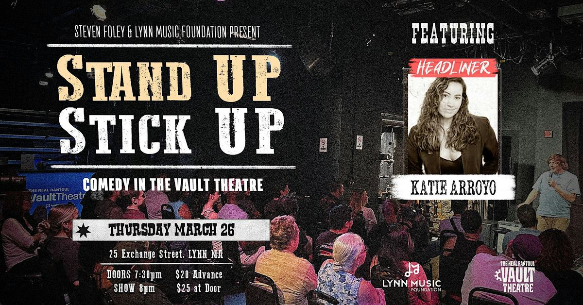 Stand Up Stick Up - Comedy @ The Vault Theatre is a monthly standup comedy show in a former historic bank, now The Neal Rantoul Vault Blackbox Theatre, inside the storied LynnArts building. Every third Thursday, we bring a lineup of New England's freshest local talent and the best national headliners to Lynn for a night of hilarious standup comedy in an intimate, unique setting. Finally, something fun to do in Lynn! Check out our website to see more upcoming shows, join our mailing list for exclusive promotions, and learn more about the show!
