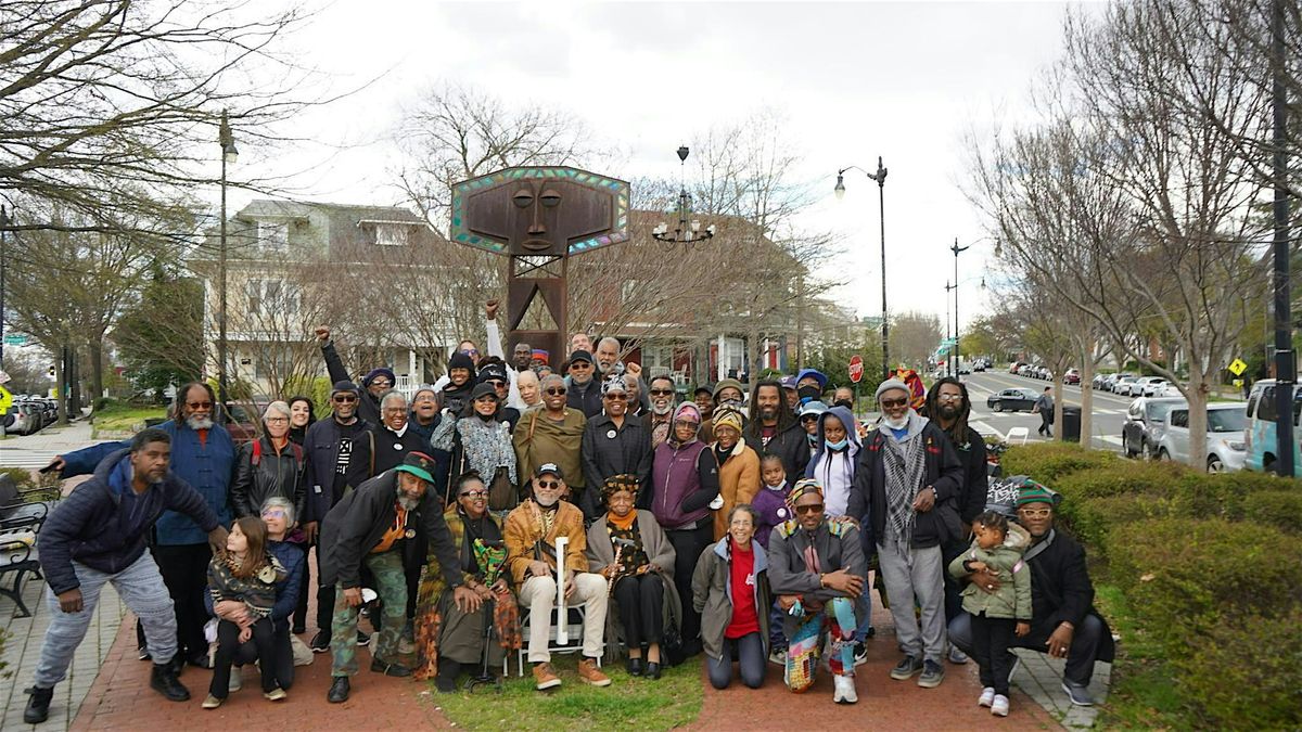 Image: Artists are the Gatekeepers of the Truth: A Celebration of Paul Robeson's 124th Birthday, and Artist Allen Uzikee Nelson, featuring Baba Uzikee Nelson, Mama Januwa Moja (center), and the community by the Humanities Truck.