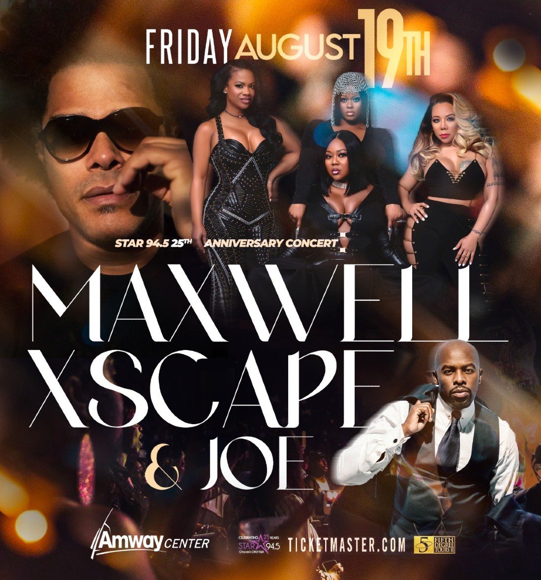 R&B legend Maxwell teams up with Xscape and Joe for his debut performance at Orlando’s Amway Center! On Friday August 19 Star 94.5 Orlando’s only R&B radio station and home of the Rickey Smiley Radio Show is celebrating their 25th Anniversary with some of our favorite R&B superstars and has prepared a special evening for the audience to remember.