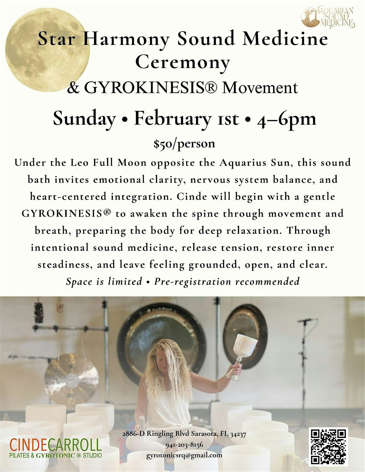 Experience a healing sound bath under the Leo full moon. Beginning with GYROKINESIS® movement to awaken the spine and breath.