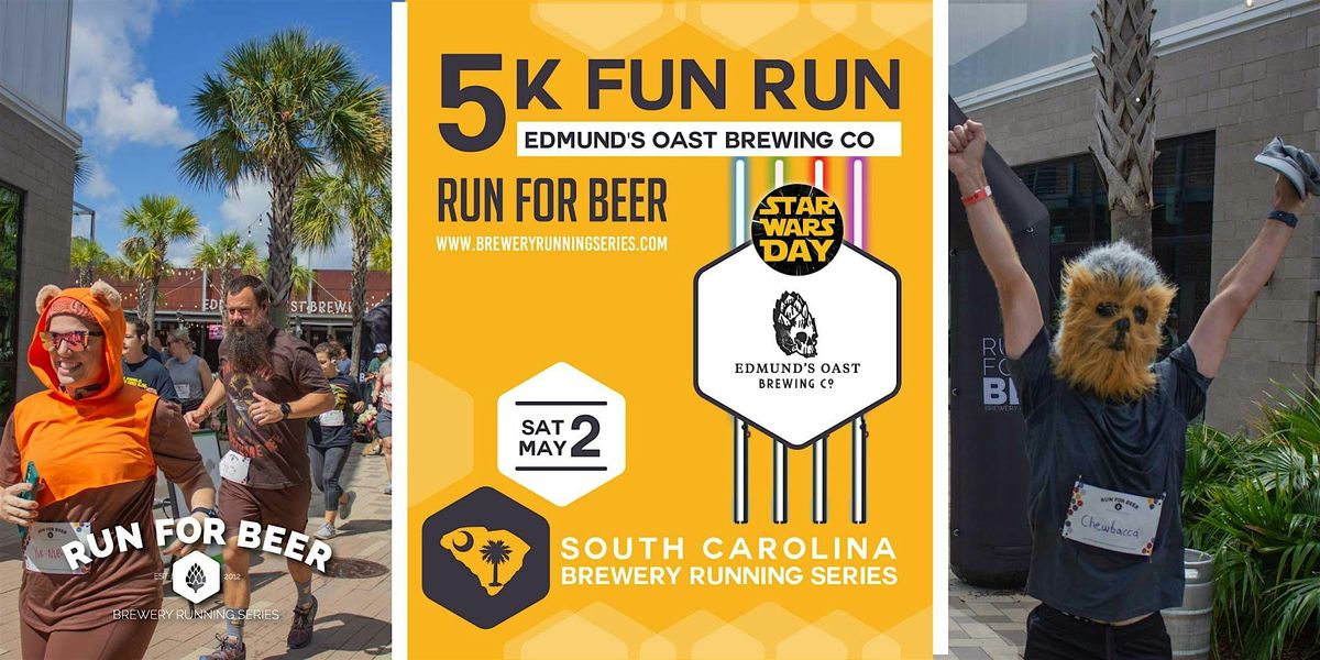 Location: Edmund’s Oast in the Charleston Brewery District. We’ve mapped out a 5K-ish route that starts and ends at the taproom, showcasing the surrounding neighborhood—no hyperspace jump required.
