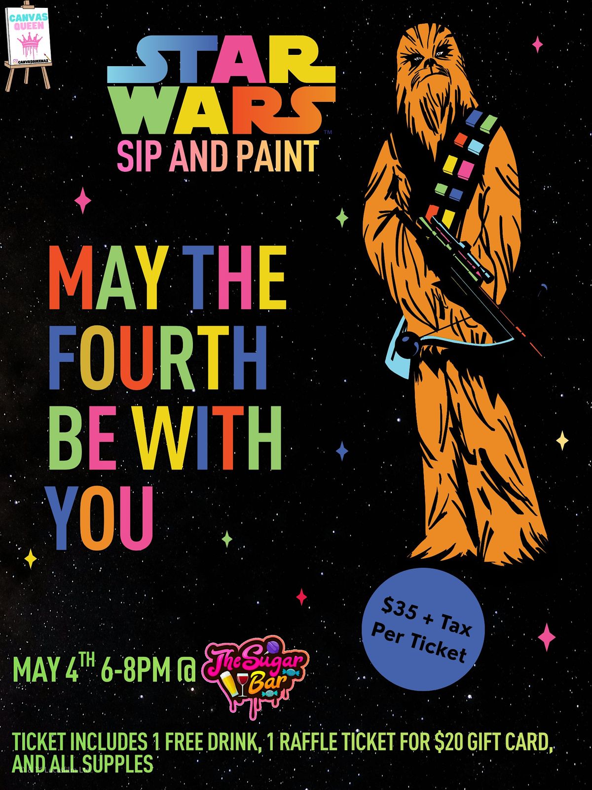 Choose an option you would like to paint. No experience required. Come enjoy your favorite drinks while you create a Star wars masterpiece.
