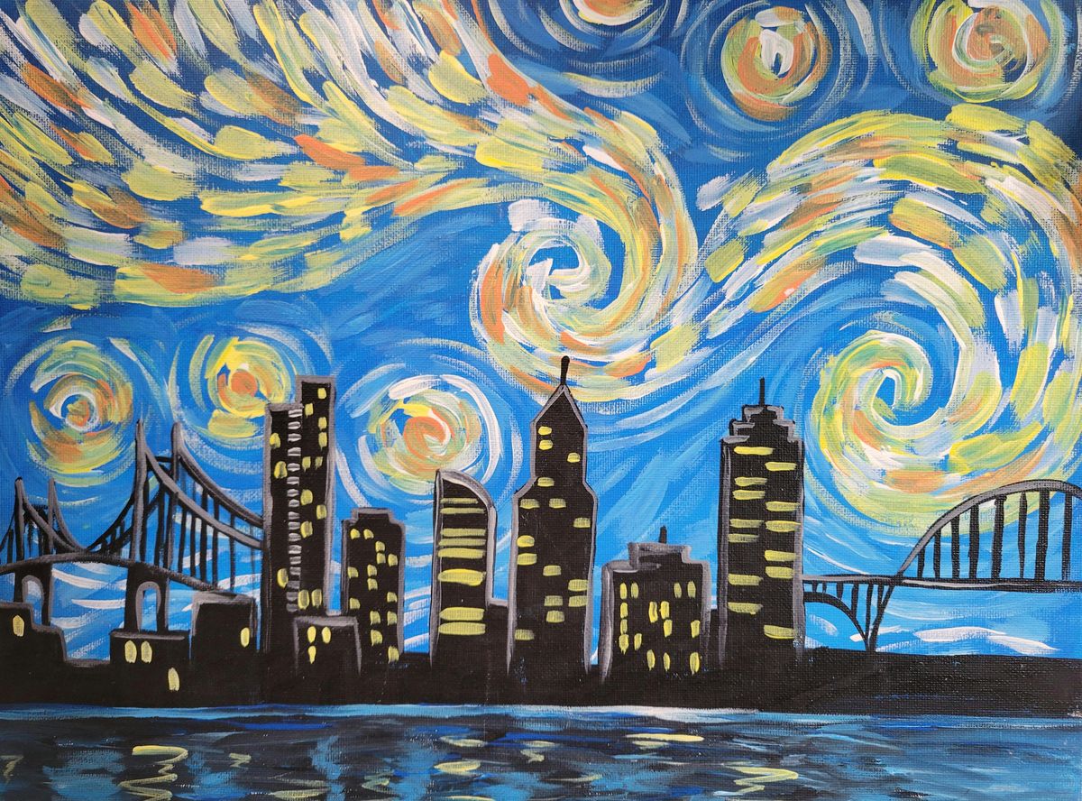 Carrie will be showing you easy steps to create this fan favorite painting of Portland done Van Gogh style!