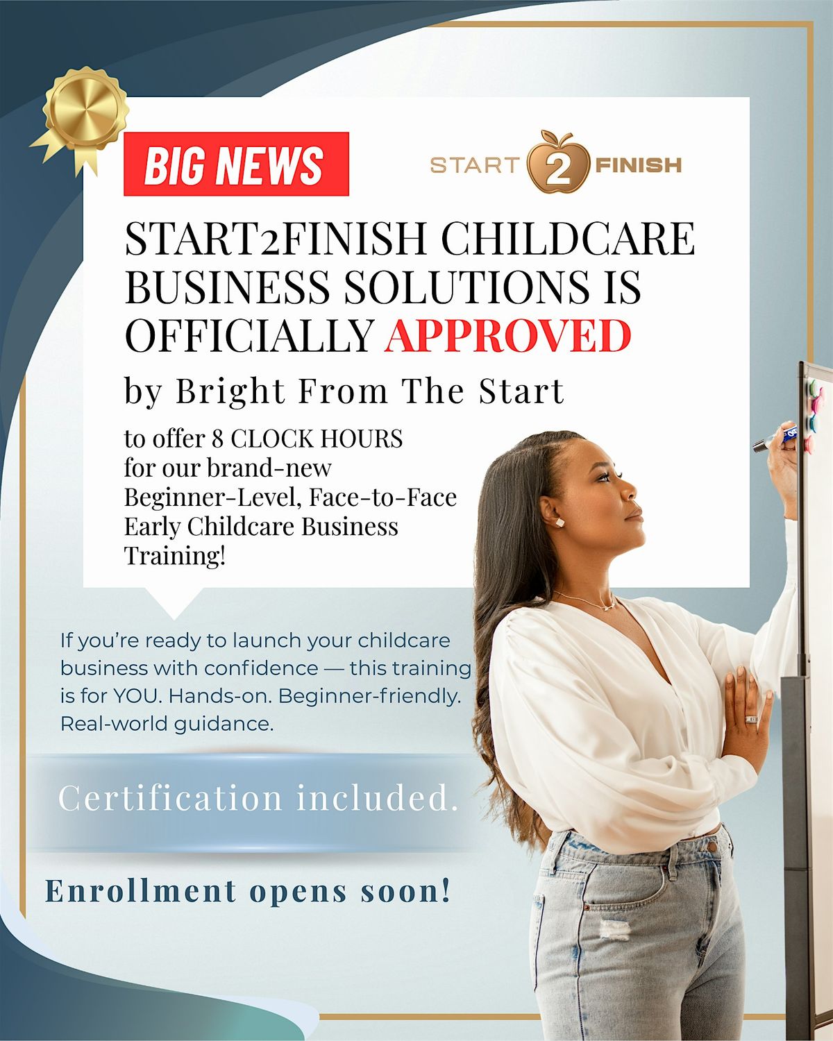Ready to kickstart your journey in childcare? Join our in-person course designed for beginners! We’ll take you step-by-step from your very first idea all the way to owning your own childcare business. Expect hands-on tips, real-world advice, and a friendly crowd. Perfect if you’re dreaming big and want to make it happen!