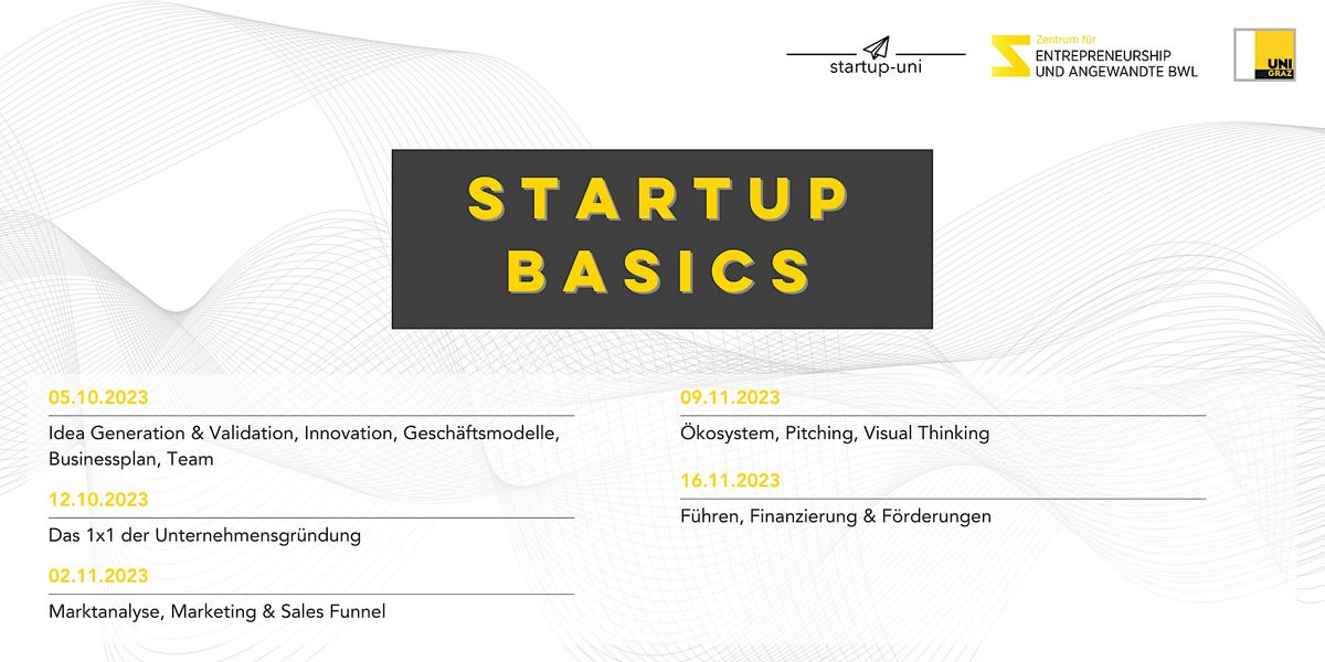 Im Rahmen der Eventreihe „Startup Basics" erhalten die Teilnehmer:innen einen Einblick in die Grundlagen des Entrepreneurships, wobei sich die inhaltliche Ausrichtung an die Bedürfnissen von Nicht-Betriebswirt:innen orientiert. Die Teilnehmenden erhalten somit die Startup Basics in Bezug auf die Unternehmensgründung.