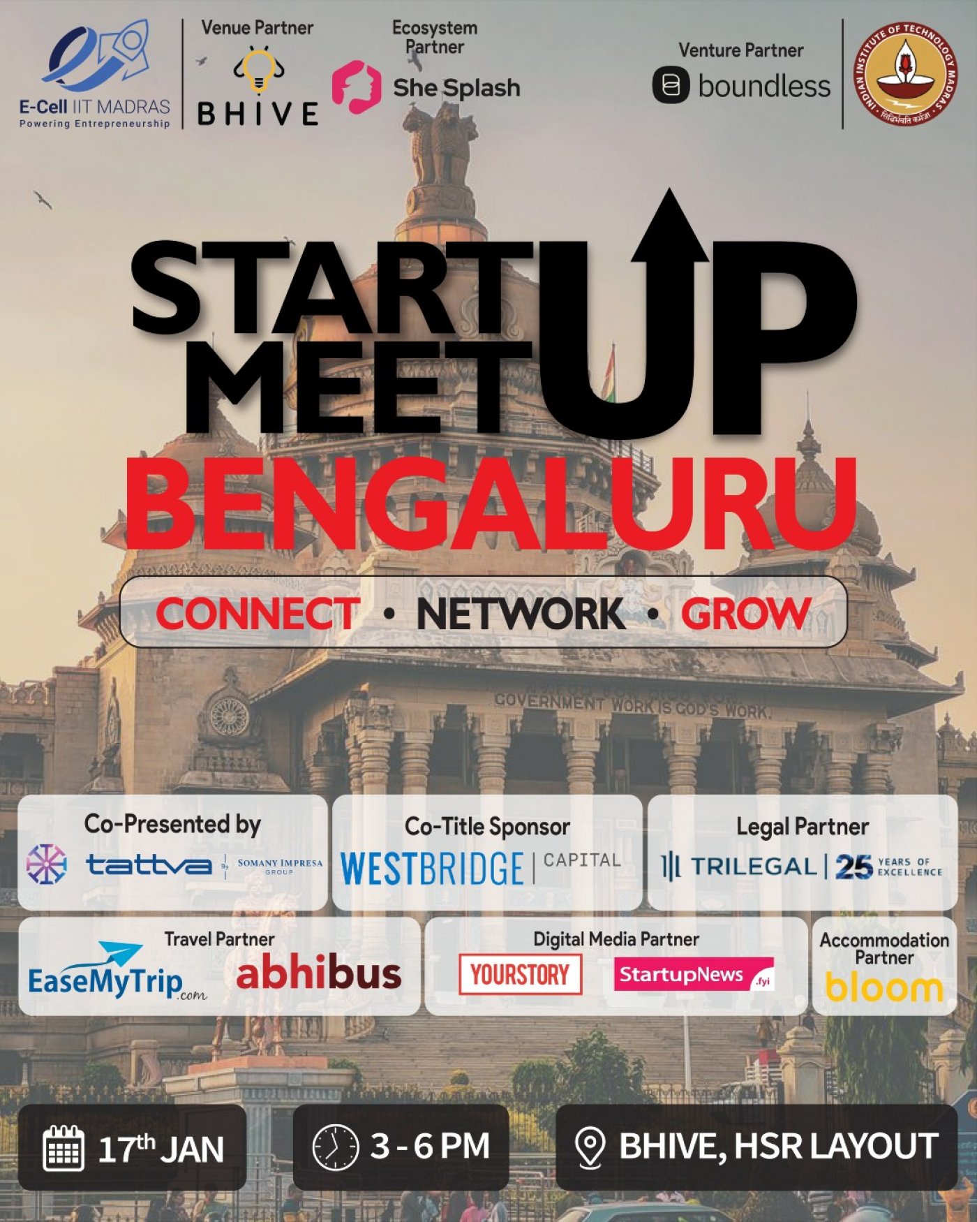 We are pleased to announce Startup Meetup Bengaluru 2026, a premier networking event that brings together startup founders, investors, and entrepreneurs to foster collaboration, learning, and meaningful connections.