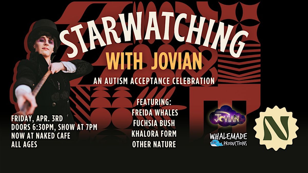 Eyes to the sky and turn your gaze towards Naked Cafe for the next edition of Starwatching with Jovian: An Autism Acceptance Celebration! Hosted by Kelowna's Autistic, aroace, and out-of-this-world drag king, Jovian!