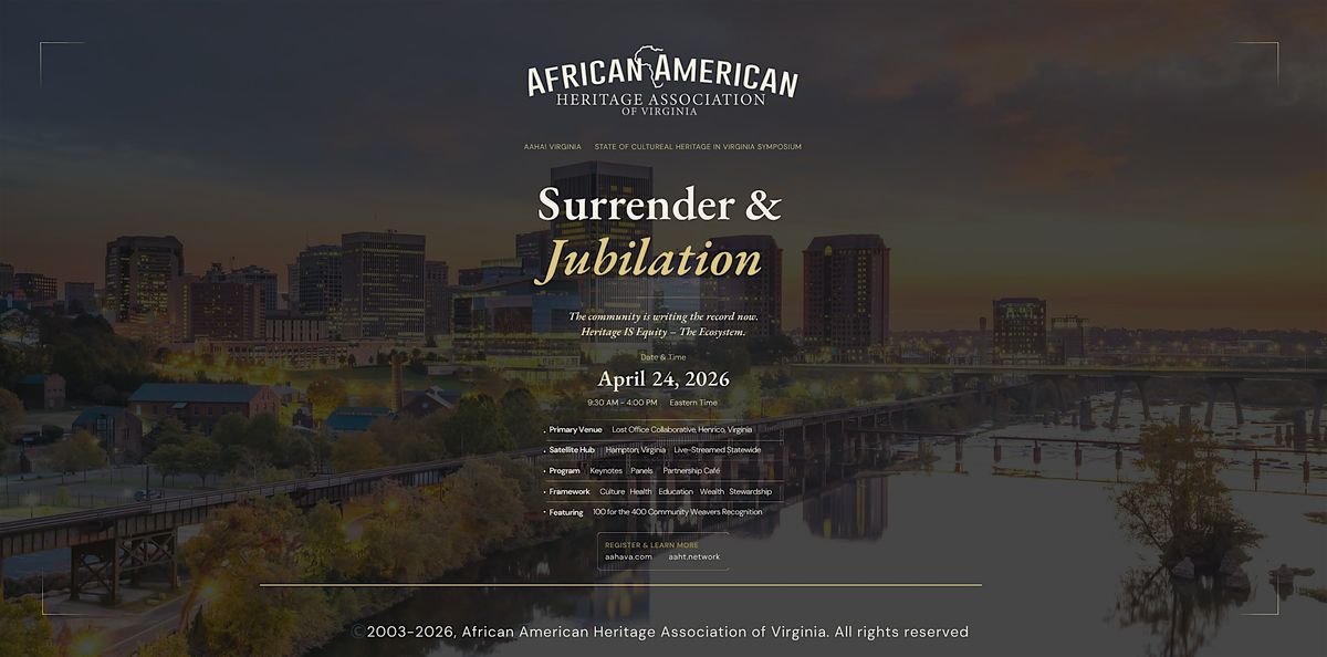 The State of Cultural Heritage Tourism in Virginia Symposium connects heritage institutions, HBCUs, destination marketing organizations, Black-owned businesses, and community leaders around a single mission: turning Virginia's African American cultural legacy into lasting economic opportunity.