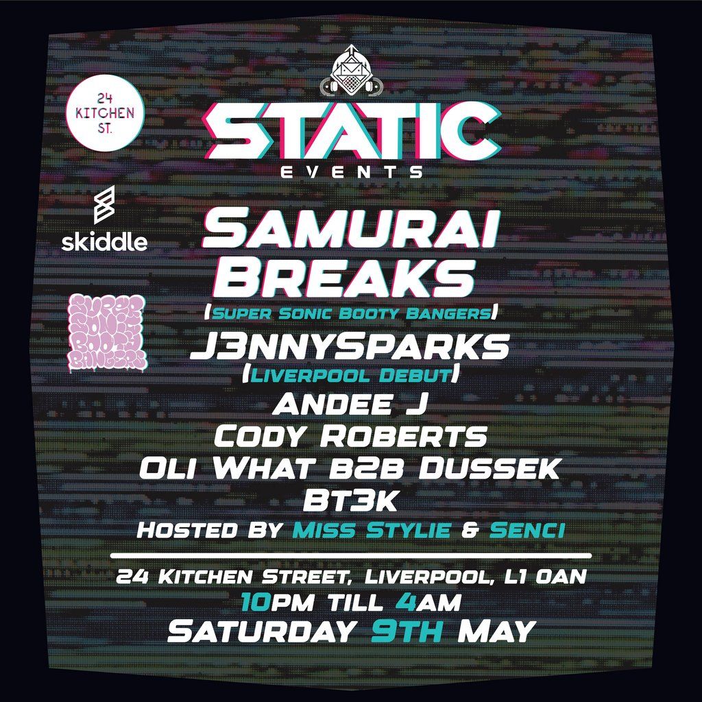 Static Events Presents; "UK Exclusive Show" With Samurai Breaks x J3nnySparks in Liverpool Saturday 9th May! BASSLINE, GRIME, UKG, JUNGLE +Artists