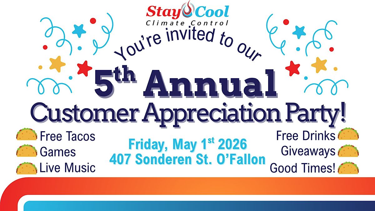 🌮We’re excited to invite you to Stay Cool Climate Control’s 5th Annual Customer Appreciation Event on May 1st at 5:00 PM! 🎉